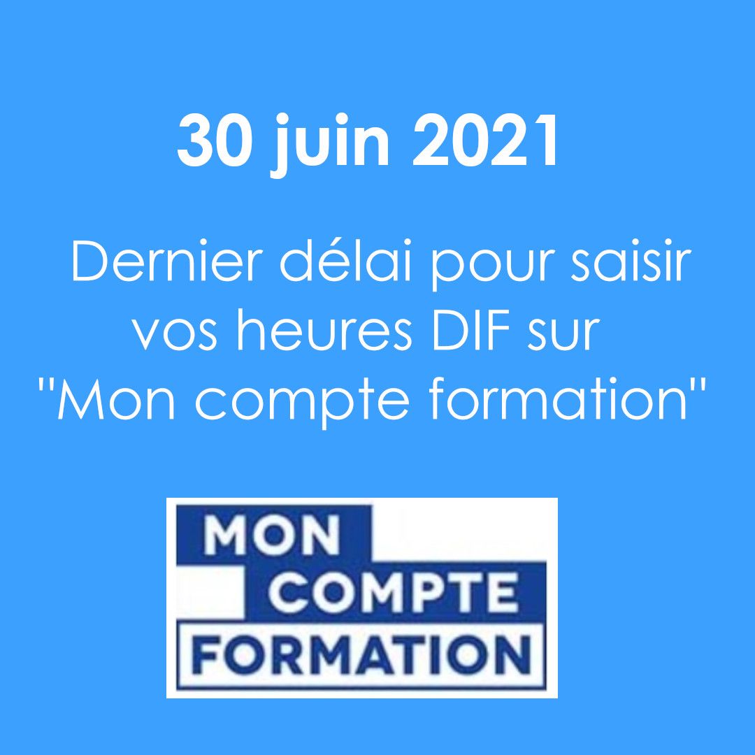 Vous avez jusqu’au 30 juin 2021 minuit pour saisir vos heures DIF sur la plateforme Mon compte formation.
